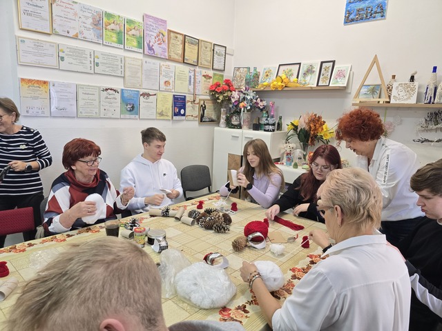 11 grudnia nasza młodzież odwiedziła Stowarzyszenie Uniwersytet Trzeciego Wieku w Szczytnie, gdzie wspólnie z uczestniczkami wzięła udział w świątecznych warsztatach plastycznych. Podczas spotkania uczniowie razem z paniami wykonywali Mikołaje na choinkę, rozwijając swoje zdolności artystyczne i kreatywność.